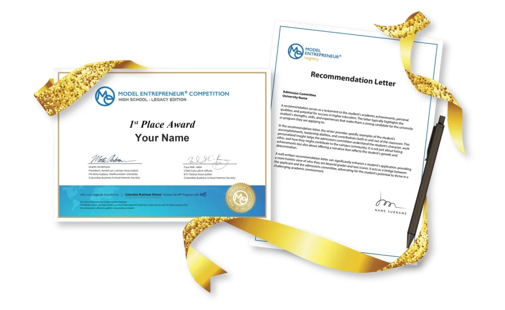 • 1st Place: $12,000 ($2,400 start-up fund; $1,600 in scholarships for IEG programs per member; letter of recommendation from MEC Judge)
